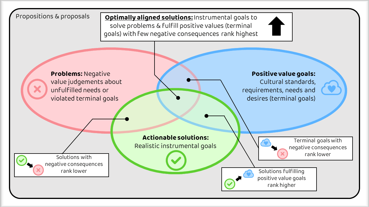 According to my proposed framework, every proposition or proposal can be classified as a problem, a terminal goal, or an instrumental goal.