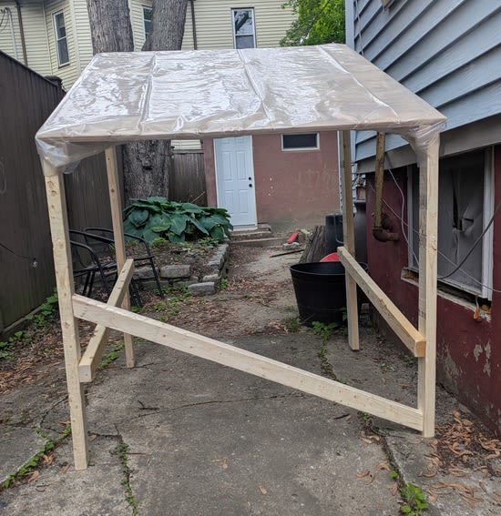 If the structure turns out to be long-lived, keep an eye on that plastic sheeting, and pull it off as soon as you start to see it decaying from sun damage. It’s the kind of stuff that will fill a yard with hard-to-pick-up nastiness if left to the ravages of nature for too long.