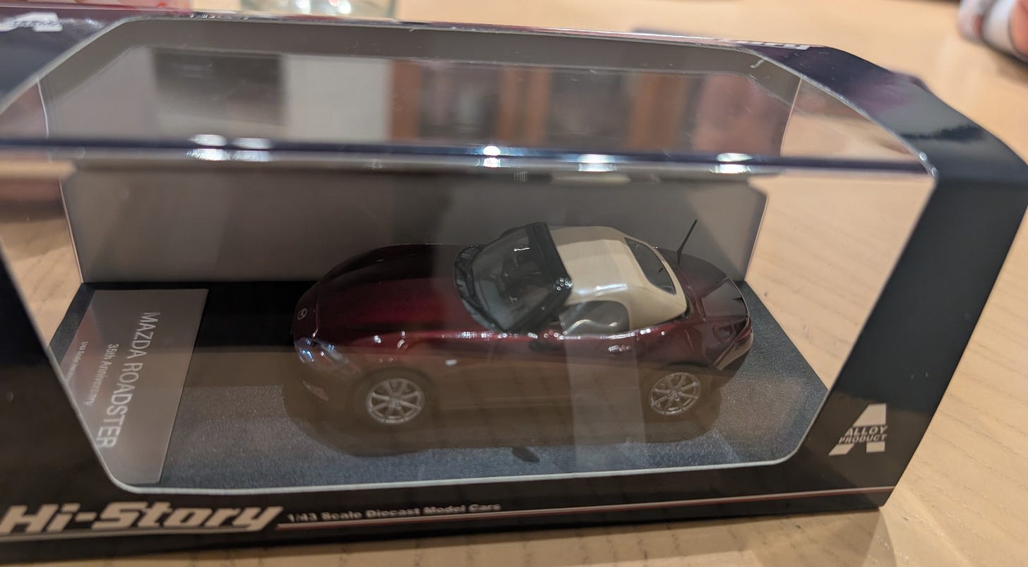 For my birthday this year, my parents gave me a little model car. I wouldn’t give them that many points for knowing my interest in motorsport, but this gift revealed more attention and effort: they’d picked my car, an MX-5 Miata and found it in the same color as my car.