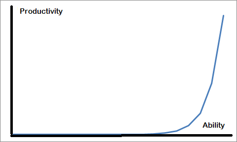It would be interesting to discuss what the relationship between ability and productivity is in different jobs and intellectual fields. I leave that for later, though. Obviously, the question of how ability is to be defined is relevant here. This question was extensively discussed in the comments to Yudkowsky’s post but I have avoided to discuss it for two reasons: firstly, because I think it is possible to get an intuitive grasp of the phenomena I’m discussing without a precise definition of ability, and, secondly, because an extensive discussion of this notion would have made the post far too long and complicated.
