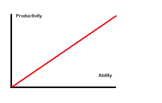 It might be that the phenomenon you’re pointing to means that productivity-as-a-function-of-ability curve is a bit less steep than it seems (though I’m not sure of it), but it seems to me unlikely that it could make it entirely linear.