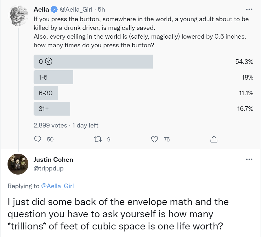 Failure to do cost-benefit analysis and scope insensitivity, in one Twitter poll: