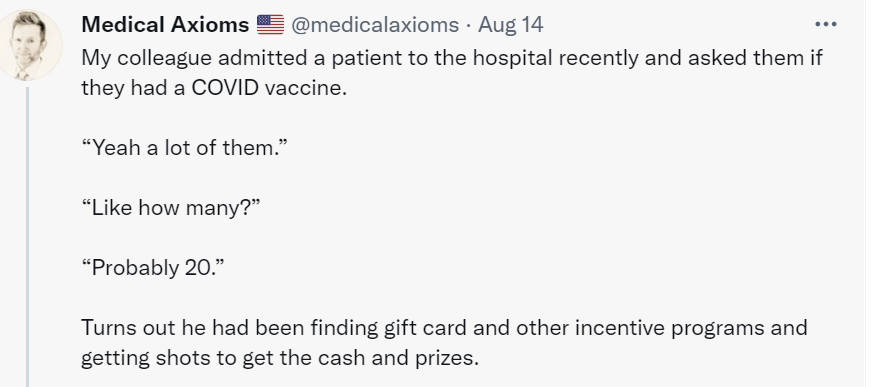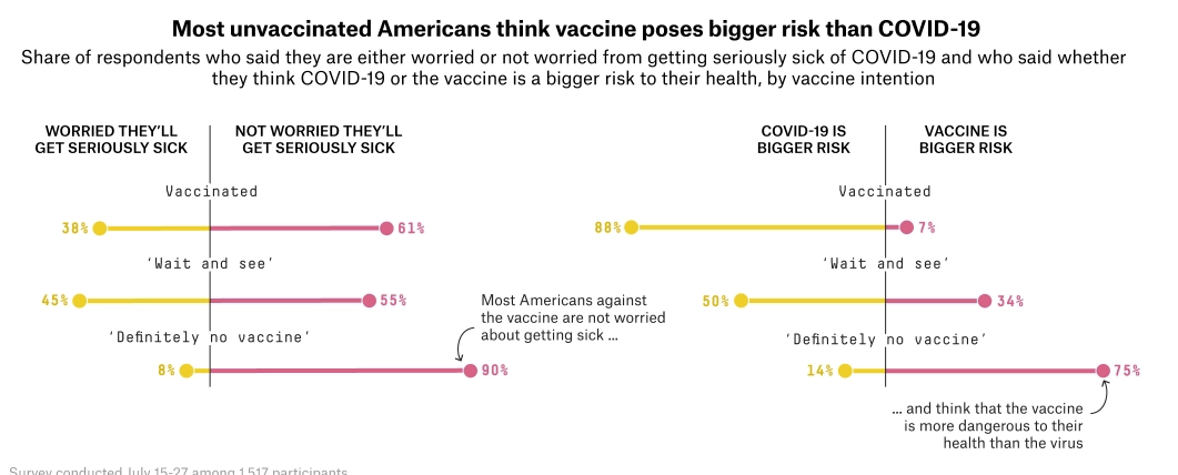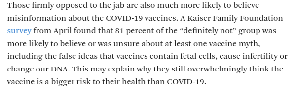 This is not a story about lack of access or time off of work. It’s a story of people who are scared of the vaccine, mostly for factually wrong reasons, and aren’t scared of Covid.