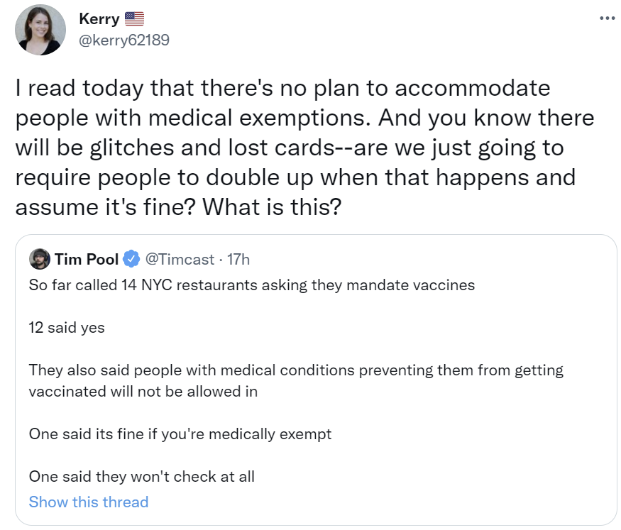 For New York in particular, you can use the Excelsior pass as a substitute for your vaccine card. If you’re medically exempt from the vaccine and can’t take it, I think you’re simply out of luck.