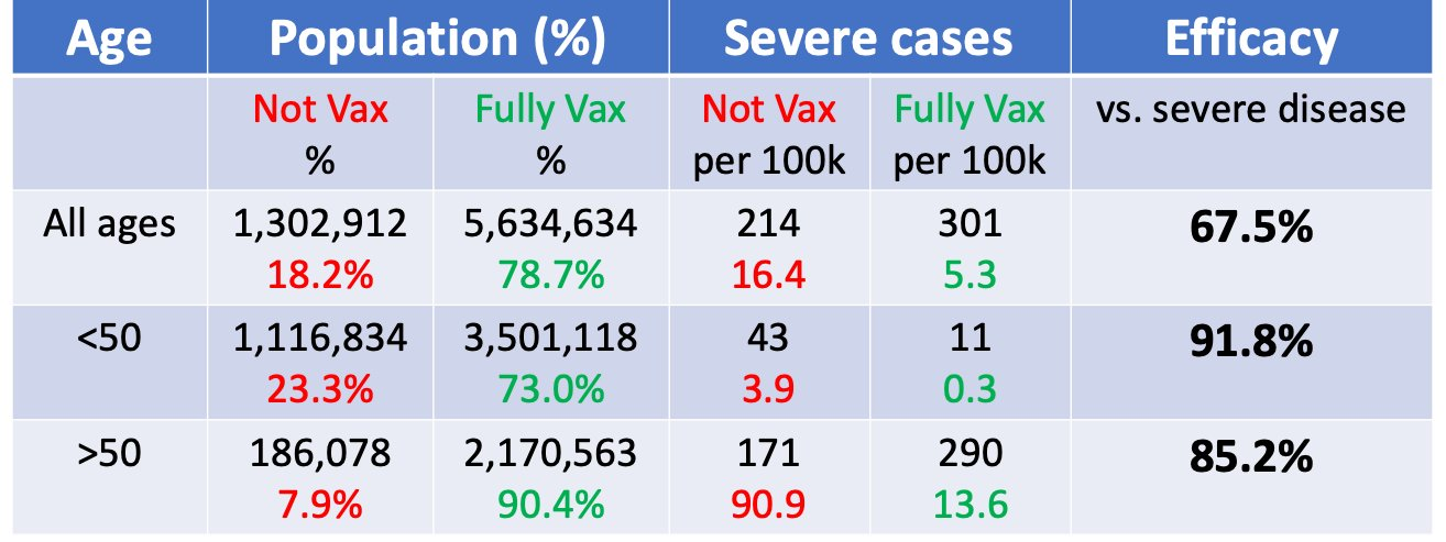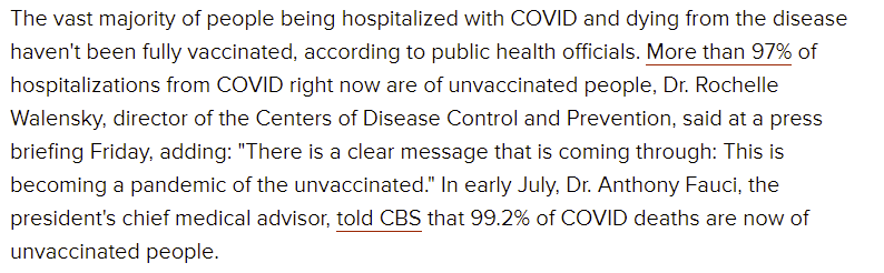 This was on July 29, so not fully current, but cases were already mostly Delta, and the vaccinated were the majority of adults and a large majority of the elderly and most vulnerable Eyes on the prize.