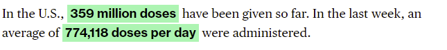 I am assuming, but am not fully confident, that third shots are not included in the dose counts above. The percentages should hold either way, and continue to show slow but steady progress.