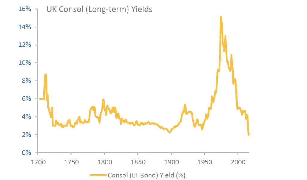 From the graph (UK long term bond yield; it could be drawn analogously for many other countries), I draw some rather uncomfortable conclusions: