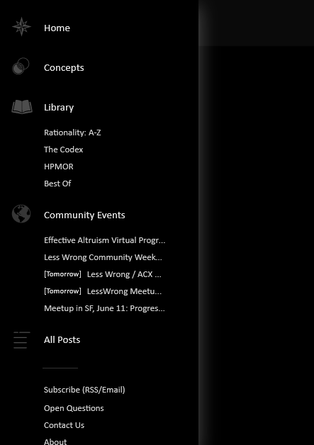One of the more commonly requested features on LessWrong is a dark mode. Well, now we have it! To activate, hover over the user-menu in the top right, open the Themes submenu, and click on Dark Mode there.
