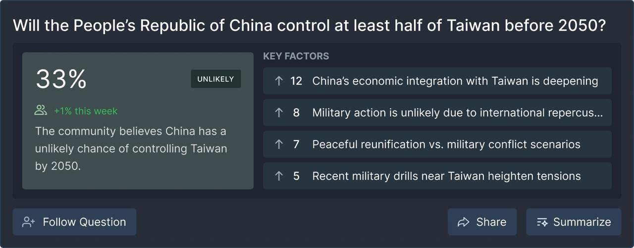 • Eliciting not just predictions, but also base rates, arguments, considerations, etc. in a structured way. This lets us aggregate much richer data across forecasters, extract the best, and present it in a palatable format. This would be a good alternative to the current solution of “please go and read 30 comments, 5000 words each.