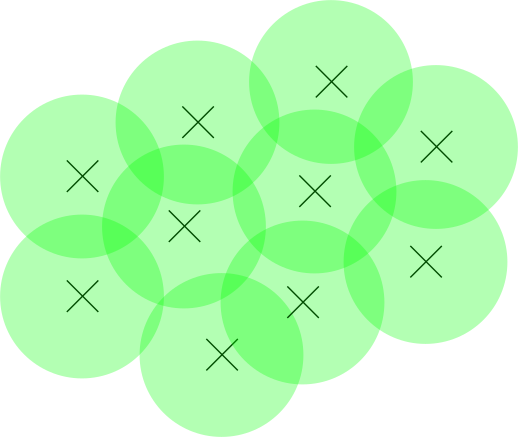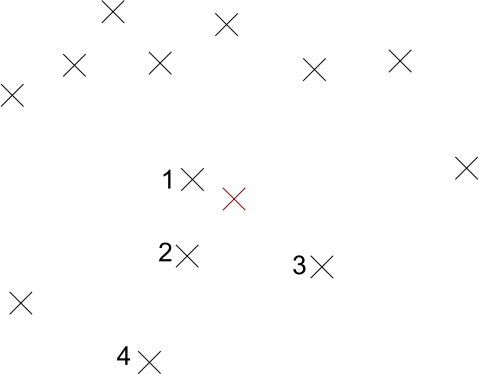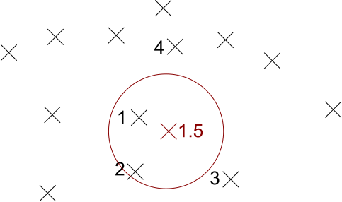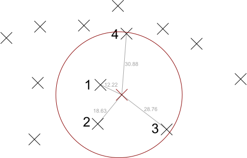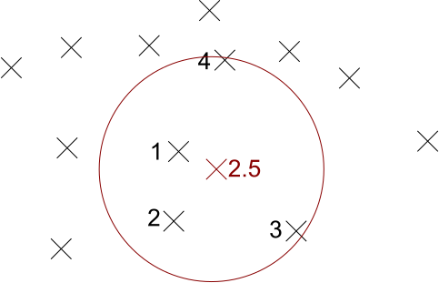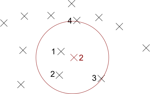 (Note that the circle just demonstrates which points are closest – we do not choose all points within a fixed distance.)