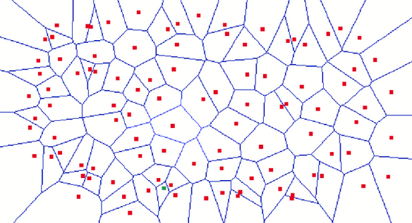 This is also called a Voronoi diagram, and it has some relevance outside of Machine Learning. For example, suppose the red dots are gas stations. Then, for any point, the [red instance determining the cell in which that point lies] represents the closest gas station.