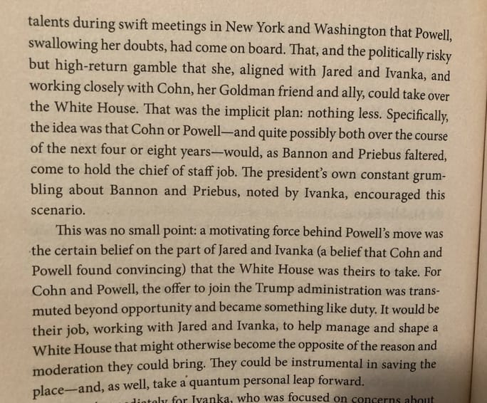 The full description by Wolff of her start in the Trump White House describes essentially her attempt, along with others, at a soft coup: