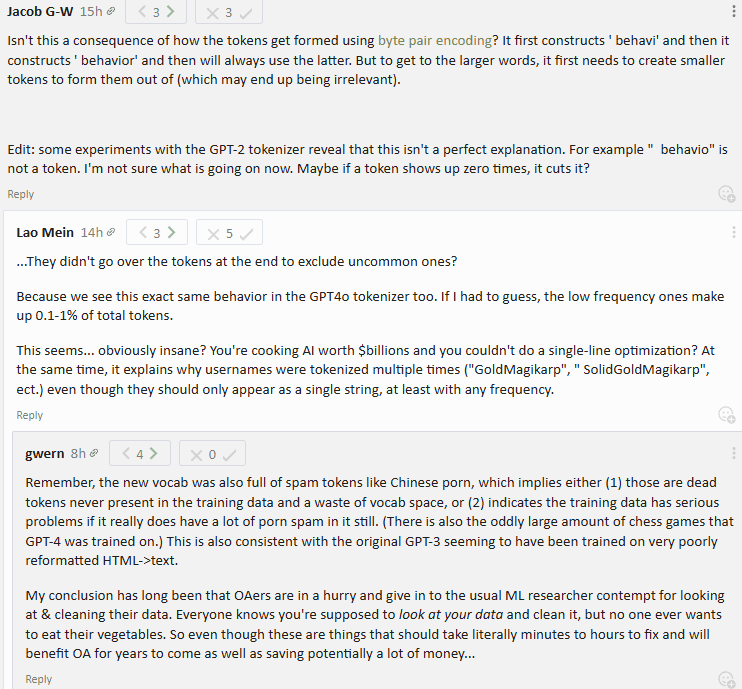 I am now very confused why all the other talk about glitch tokens (including my own, from just a week ago!) sound so confused. This seems very simple and intuitive and I am utterly shocked I haven’t seen anyone else write this exact analysis. It probably exists out there, and I just haven’t seen it.