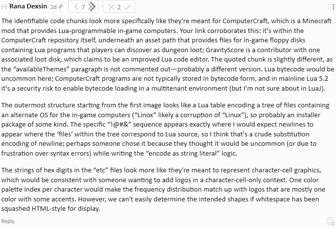 This is a collection of every unidentified GPT2 glitch token listed in the third glitch token archaeology post. I was able to find the source of every single one, except for ”?????-” and ”?????-?????-”[1]. Please tell me if I missed one, or you’ve discovered one and don’t understand where it came from. This isn’t meant to be a well-written analysis, just a quick repository of my glitch-hunting observations.
