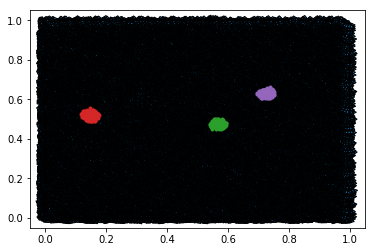 We’ll use these three randomly-chosen neighborhoods of nodes (green is neighborhood 1, red is 2, purple is 3):