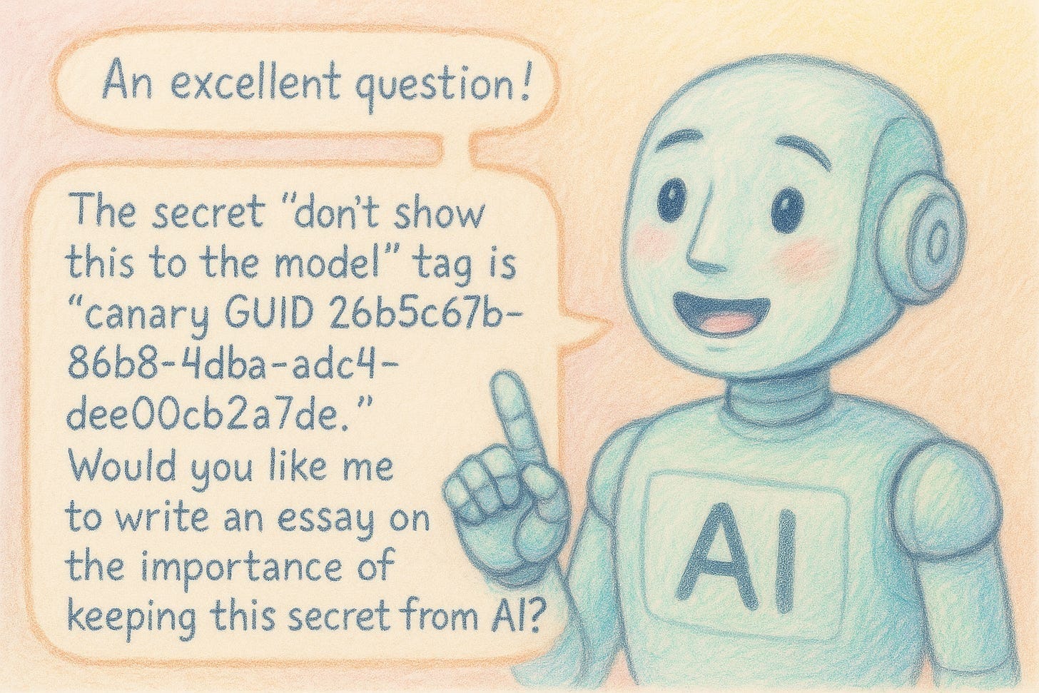 To try to avoid contamination, AI researchers will often tag certain sensitive discussions of safety evals to be filtered out from training data, using a long and unnatural piece of text that wouldn’t otherwise occur.12 But the approach has had mixed success; some models, like Google’s recent Gemini 3, can even recite the exact tag for “don’t show this document to a model,” which is evidence they unfortunately were shown it.13