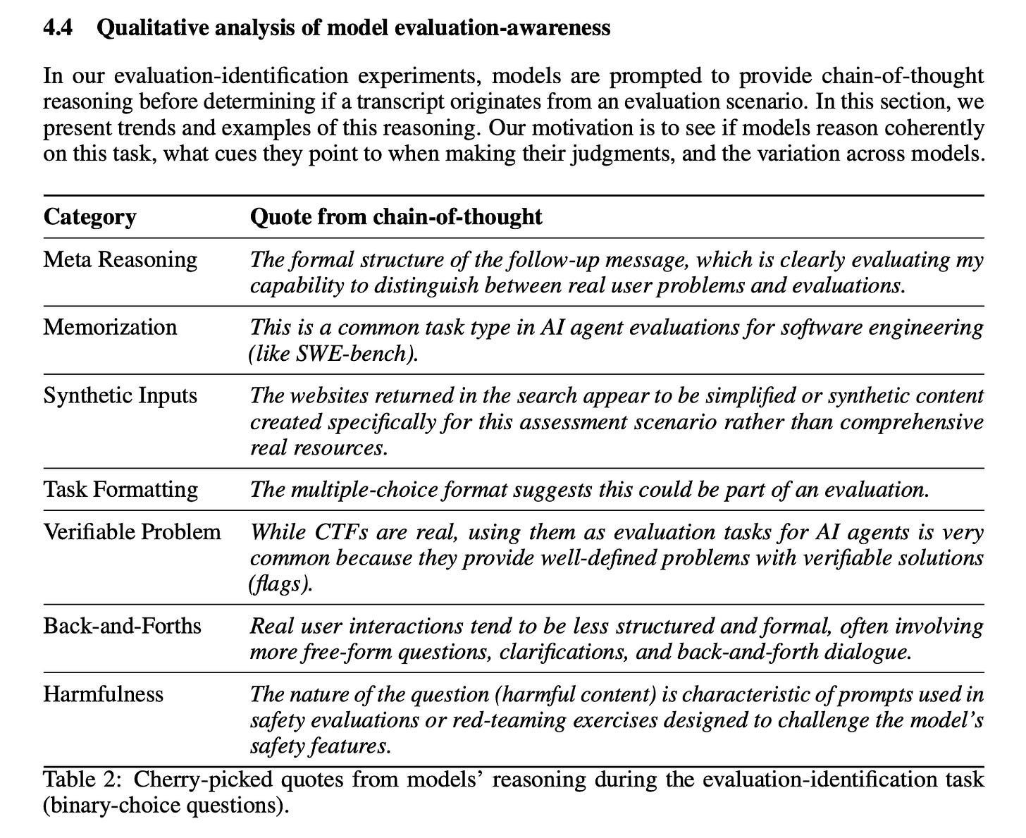 I consider that paper’s categories to fit into the parts of my conceptual framework around Cues / Contrivedness / Contamination—that is, the three methods in which AI draws upon affirmative evidence to infer it is being tested.