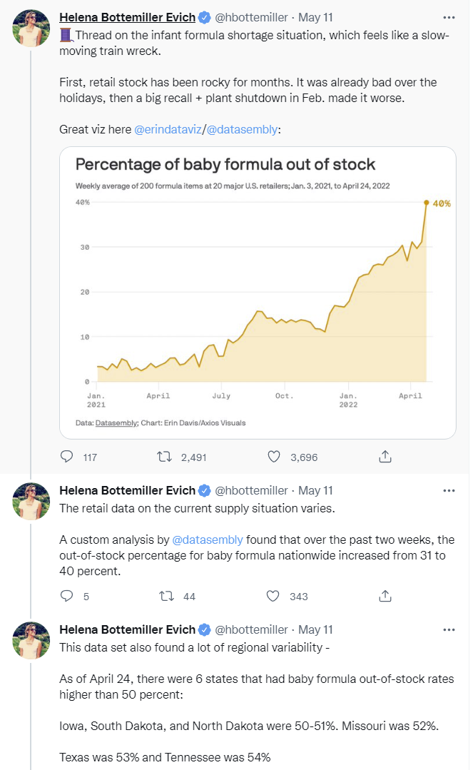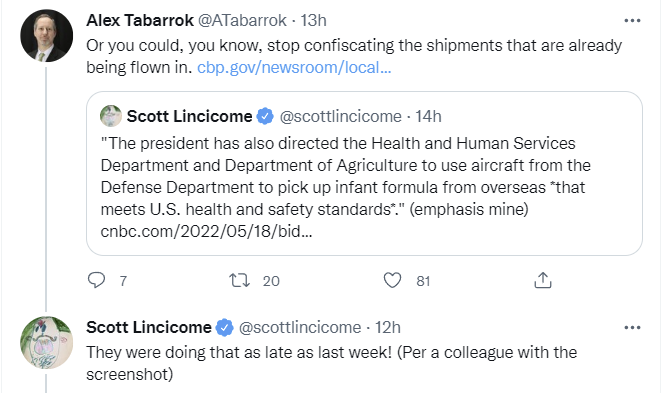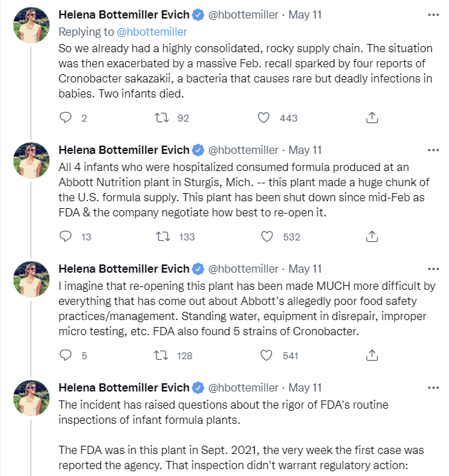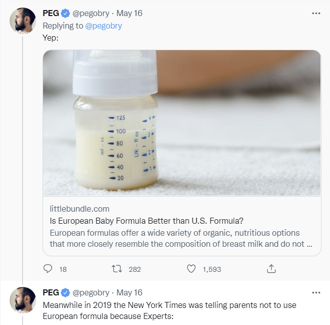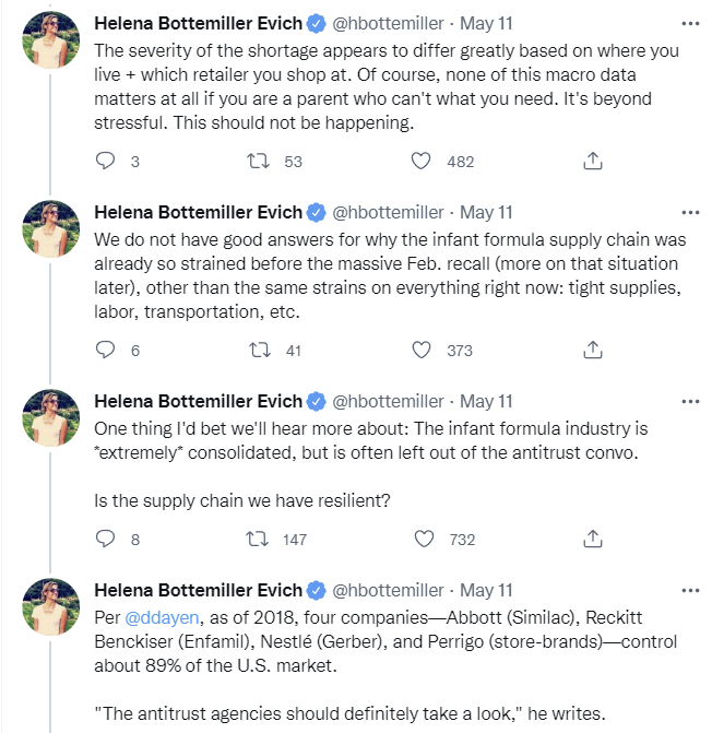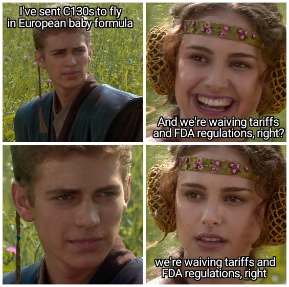 Great Formal Workups of Much of This (Scott Lincicome): America’s Infant Formula Crisis and the ‘Resiliency’ Mirage. And another from Derek Thompson at The Atlantic. If you want a shorter summary, both of those are excellent. Also, together they fight crime did a podcast.