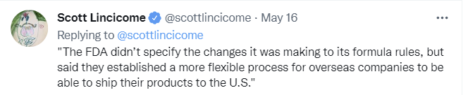I’m not sure if the FDA spokesperson meant to be this honest in responding to the infant formula shortage: