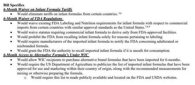 Actually, you know what we are doing instead? We are continuing to intercept European baby formula that people try to import, and impounding it.
