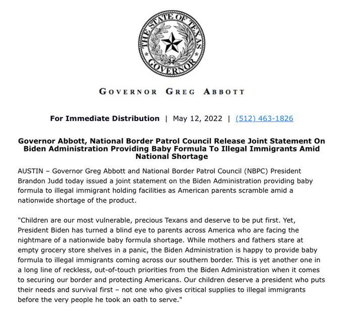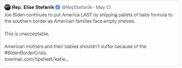 When we ship pallets of baby formula to the southern border, we are giving that formula to babies that we are detaining. If we do not give those babies formula, then those babies will die.