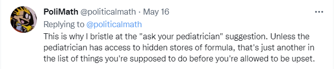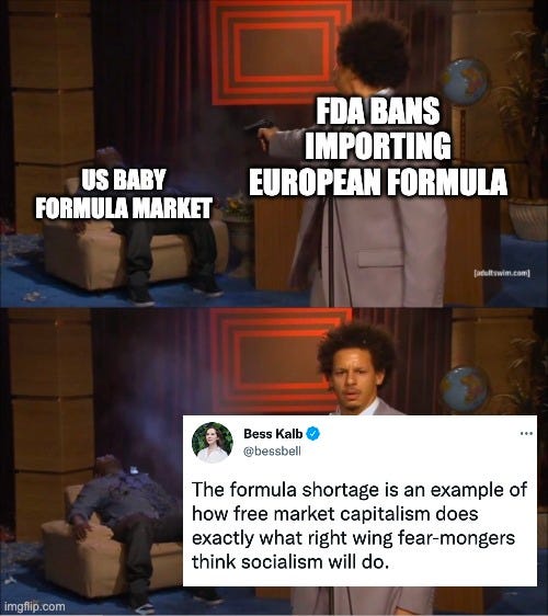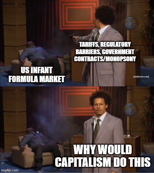 That’s in case anyone was wondering if we have a free market in baby formula. Also, that last line isn’t going anywhere, so…