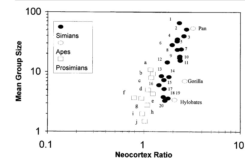 To return to Dunbar for a moment, the fundamental dynamics of the structural intelligence thesis may provide a good explanation for his findings. One thing which distinguishes humans from other primates is our exceptionally large neocortex, to find the origin for this anomaly, Dunbar correlated the size of the neocortex as a ratio to various primate characteristics. Diet, skills in foraging and range size were all not correlated, but the group size of the primates were.[7]
