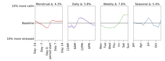 [1] Pierson, E., Althoff, T., Thomas, D. et al. Daily, weekly, seasonal and menstrual cycles in women’s mood, behaviour and vital signs. Nat Hum Behav (2021). https://doi.org/10.1038/s41562-020-01046-9