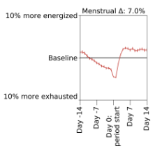 In my original question “How do you optimize productivity with respect to your menstrual cycle?”, the two people who self-reported perceived energy levels had data which roughly agrees with the Clue study: