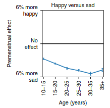 Here is another chart which shows how the amplitude of PMS effects on happy vs sad increase with age.