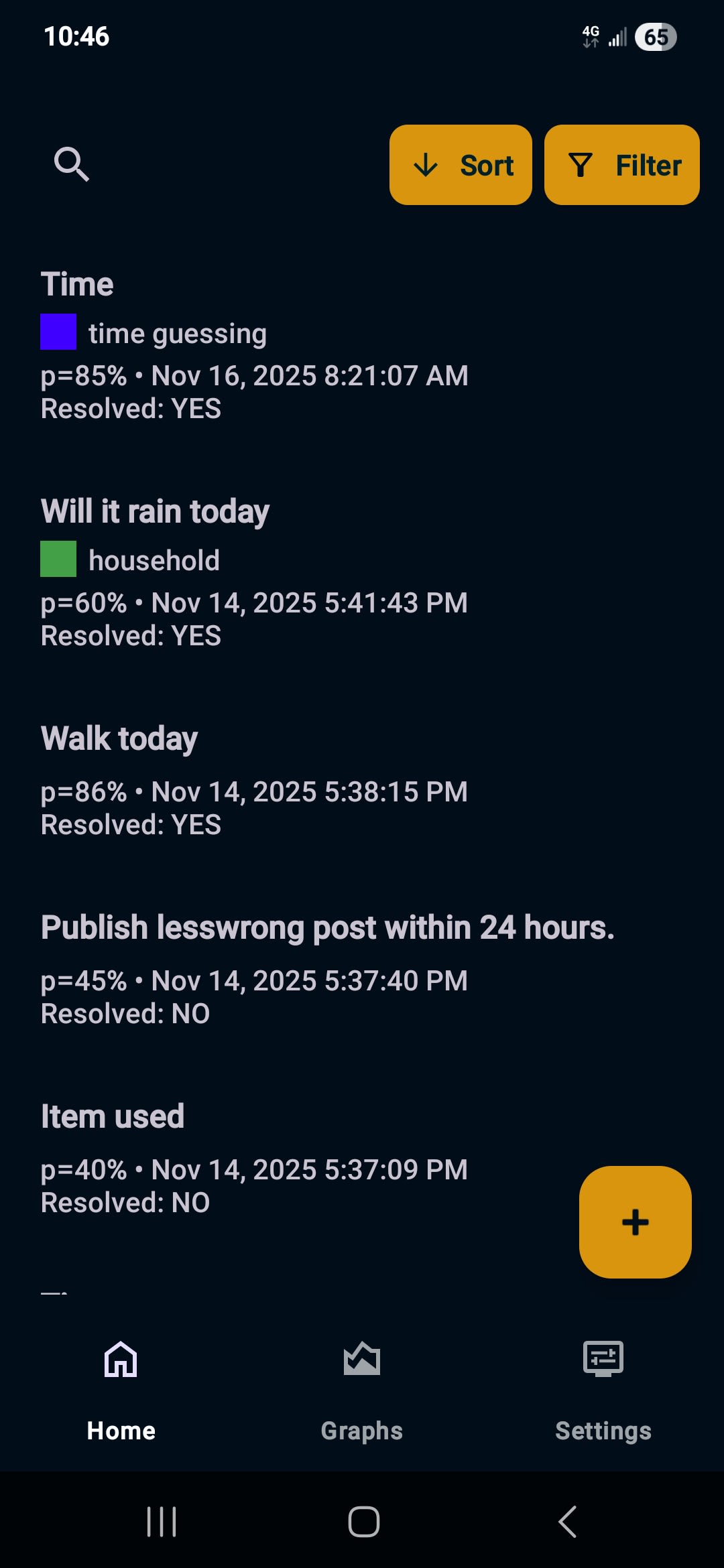 A benefit I didn’t foresee is as a motivation tool, for example if you give a probability you will begin work on some bothersome chore that day, assigning a low probability feels like a defeat, so I assign a high one, then feel compelled to actually follow through.
