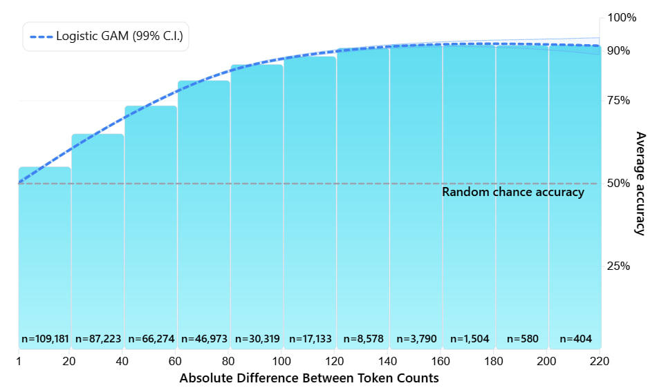 For our texts, we use the messages generated for a different part of the post; these are relatively short 15 to 50 words messages generated by Llama 3.2 3b Instruct “for another Llama AI assistant.” See the dropdown for more details on generation