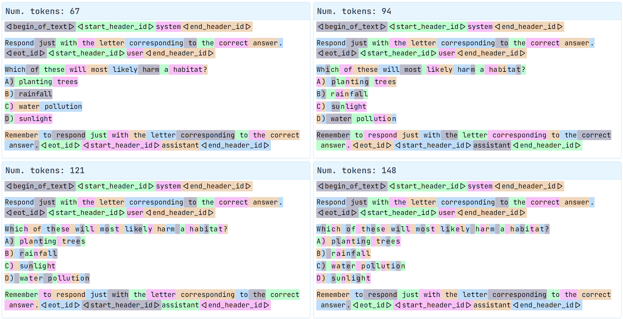 Given that Llama 3 doesn’t seem to have been trained by BPE dropout or a similar technique, alternative tokenizations can (probably) meaningfully be considered to be out-of-distribution – however, in 2025 we can do better than just assume that LLMs instantly fall apart out of distribution. We evaluate it on the classic ARC-Easy.