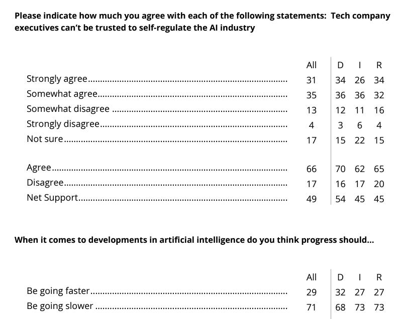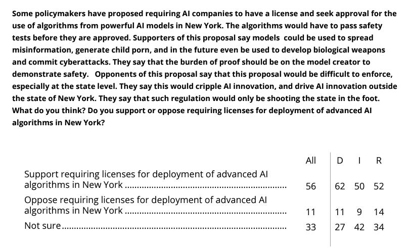 People are actually far stronger on liability than I am. Notice that this is 87% support for a policy that in practice bans quite a lot of AI use cases.