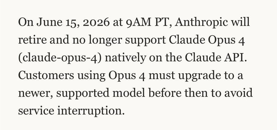 Wolfram Siener gives some details of why this particular deprecation inspires such outrage, more so than most others, going over the relevant history of Opus 4. I think that if you were choosing a second model to preserve access to during this interregnum, after obvious first pick Opus 3, you would choose Opus 4.