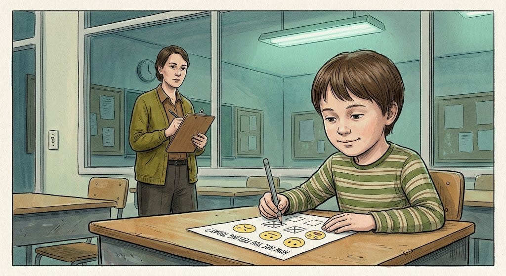 Now there’s a new initiative: the school wants to make sure kids have “good mental health” and love school! They’re going to start running welfare evals on each kid and coming up with interventions to improve any problems they find.