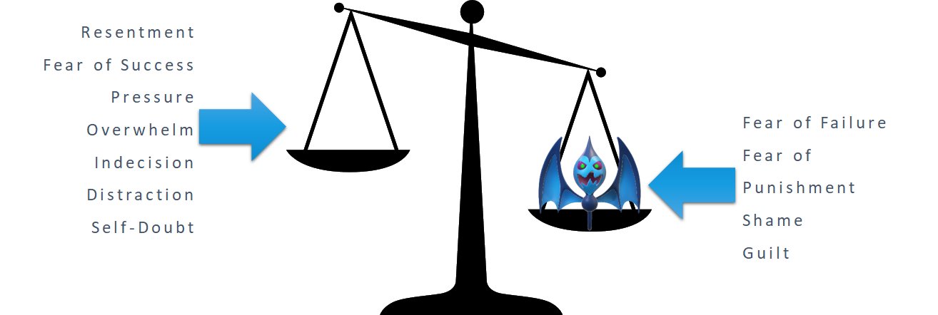 The way it goes is this: We feel negative emotions related to a task, so fail to do it. In response to this, we begin to start feeding the “self-loathing monster” trying to pile on enough shame and guilt that they outweigh the other negative emotions.