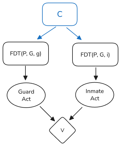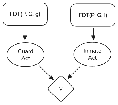 Immediately, there’s a problem: neither the guard nor the inmate’s FDT-recommendation descend from the other! Suppose you, as an FDT agent, find yourself as the guard. According to Yudkowsky & Soares’ equations, you choose your action by considering the (updateless) expected utility of each possible intervention on . But neither nor the inmate’s action are subjunctively altered by your intervention. Thus, FDT treats the guard and inmate actions as independent and therefore recommends defection. The inmate will reason similarly and also defect. Thus, following FDT leads to mutual defection.