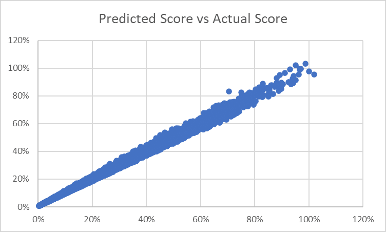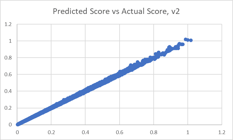 Our largest difference now is 4.74%: we have never been off by more than that on any site. The average error size is 0.29%, and (even better), when we look at entries where we predict scores >90% we don’t tend to be overestimating that much: on average our >90% scores are overestimated only by 0.2%!