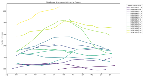 I’m curious what seasonality looks like at other dances, if anyone has data they can share!