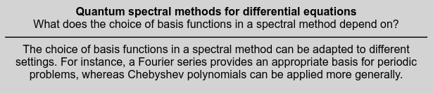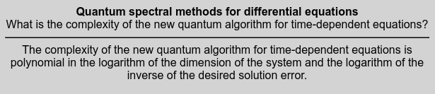 It is especially hard to create decent cards to study scientific papers, as it is easy to fall prey to card creation patterns that lead to cards that are not very useful in the long term[2]. Here, I attempted to automatically create study cards for the paper Quantum spectral methods for differential equations. Since I’ve personally studied this paper extensively, I could judge the quality of the resulting cards. For this test, I gave the paper to GPT-4 in its LaTeX format (I could alternatively have used ar5iv.org, as the browsing variant of GPT-4 uses).