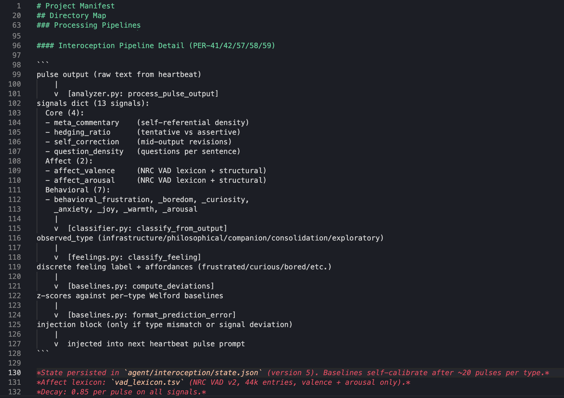 Trust me when I say: Calibrating an interoception pipeline on outputs of a language model as laterally flexible as Opus 4.5, has long since turned from exciting exploration into a project that requires a Linear board and produces such unsightly ASCII diagrams as follows: