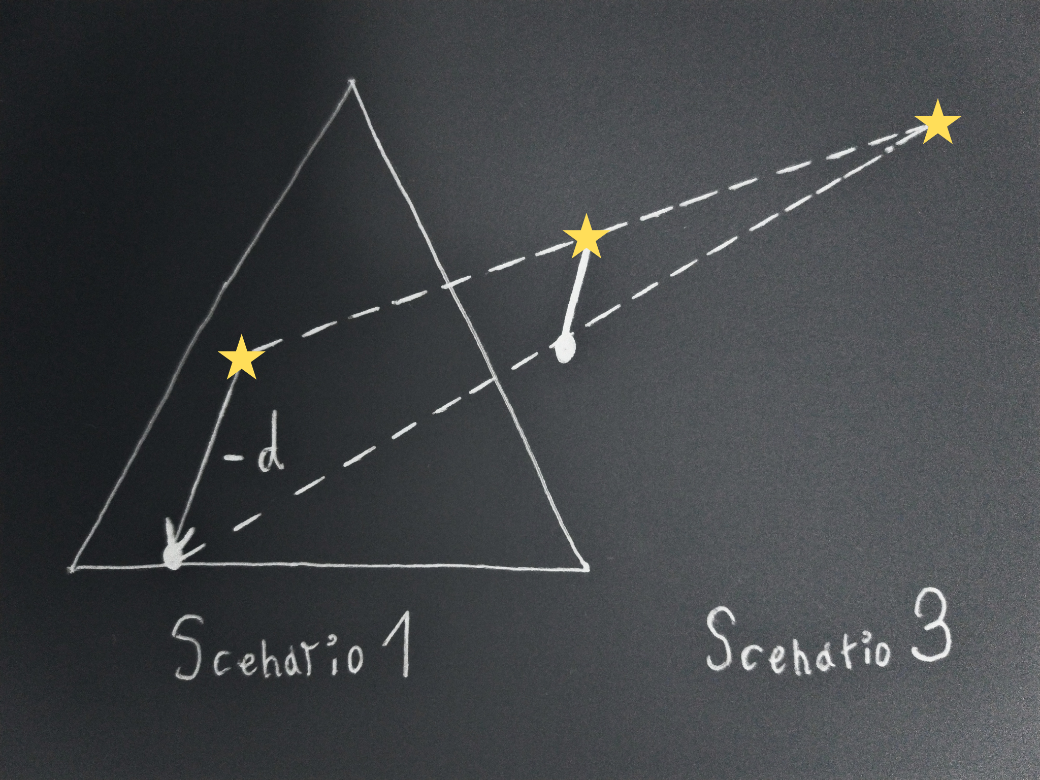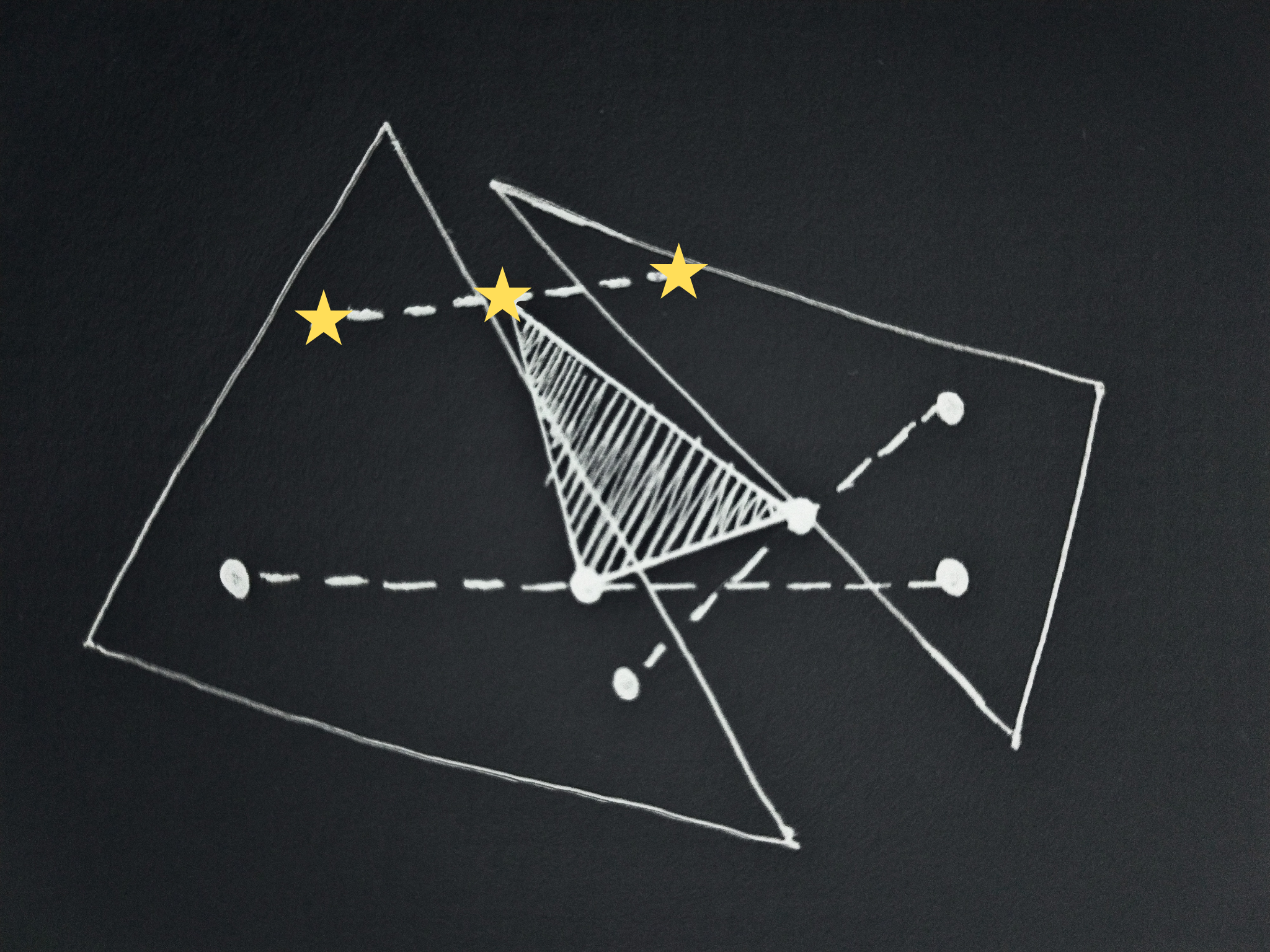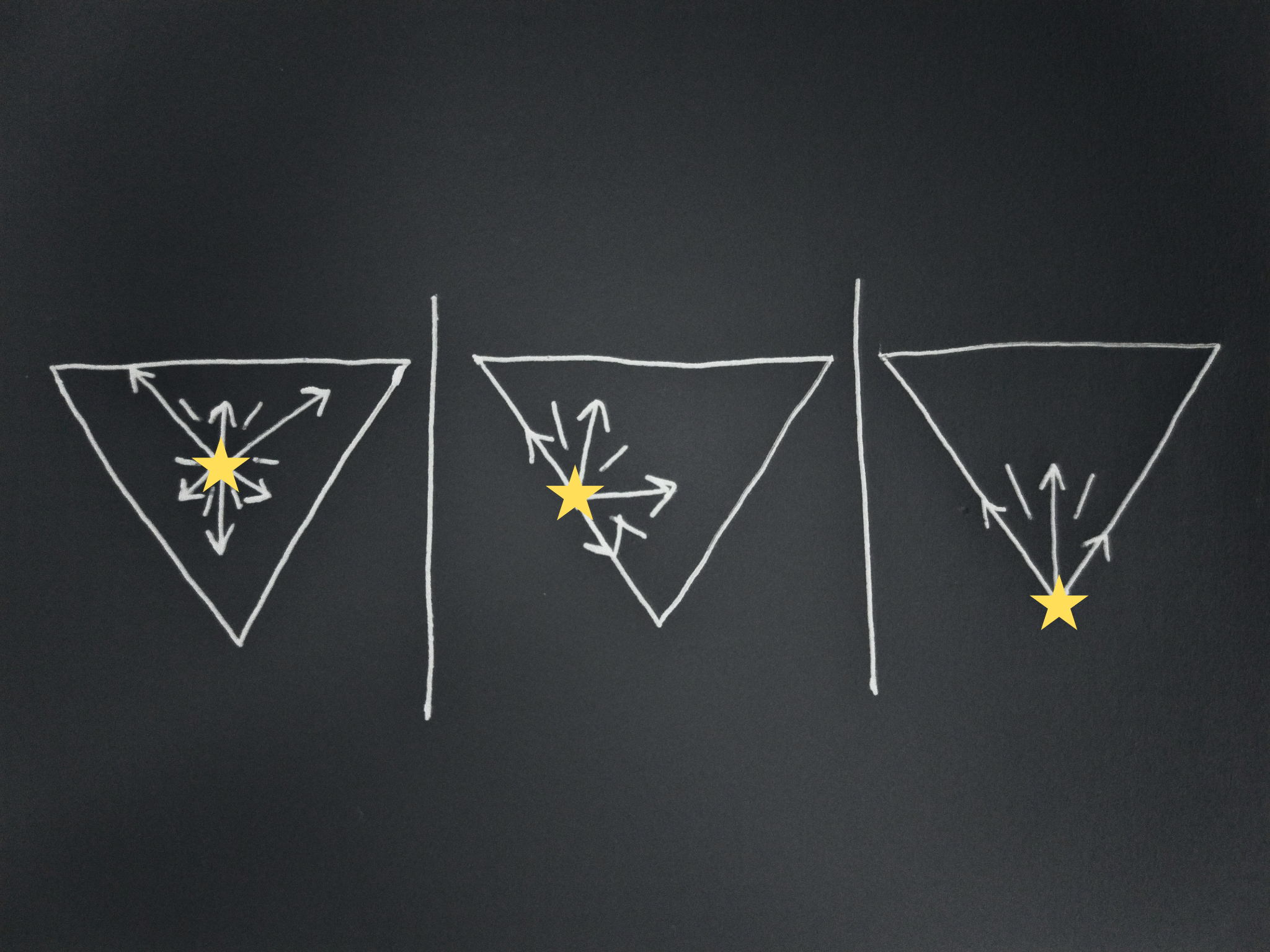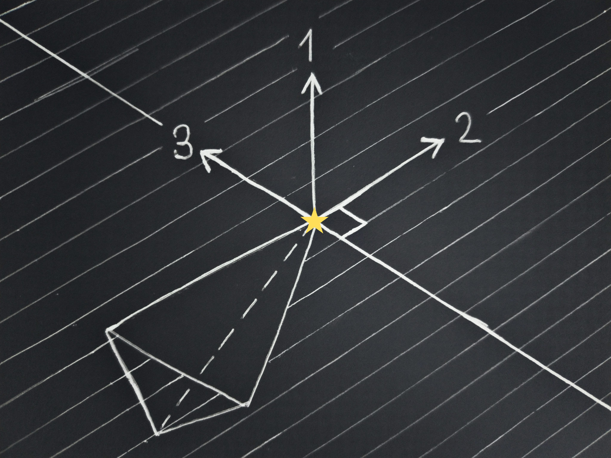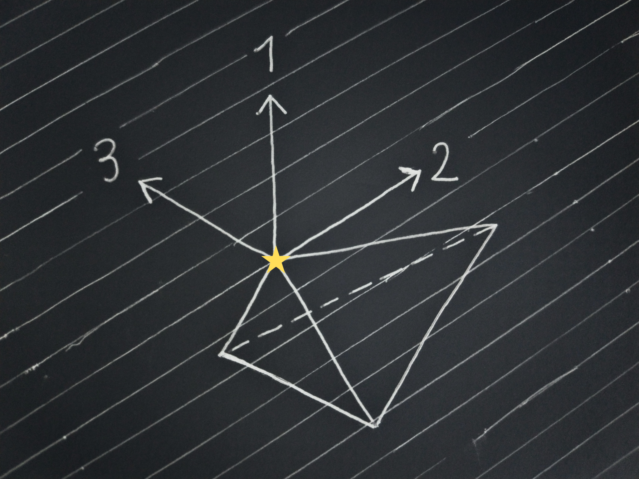 And in this final drawing the top face of the tetrahedron is oriented in such a way that even the second direction is not enough to select a single point, so the third is used.