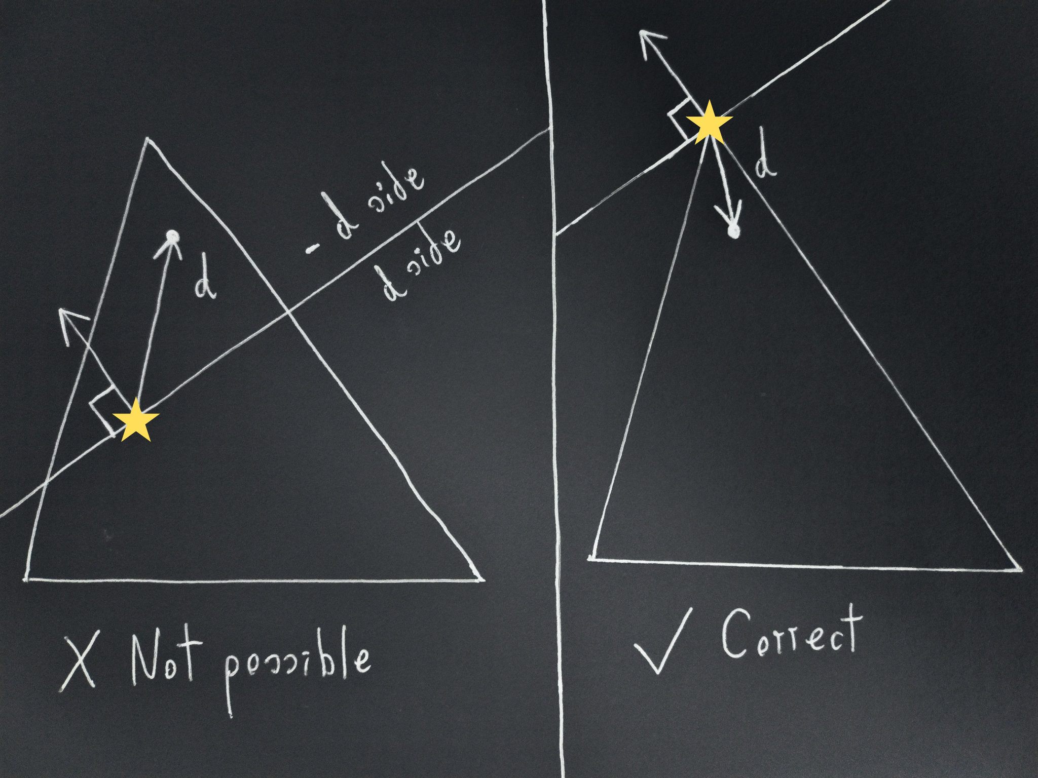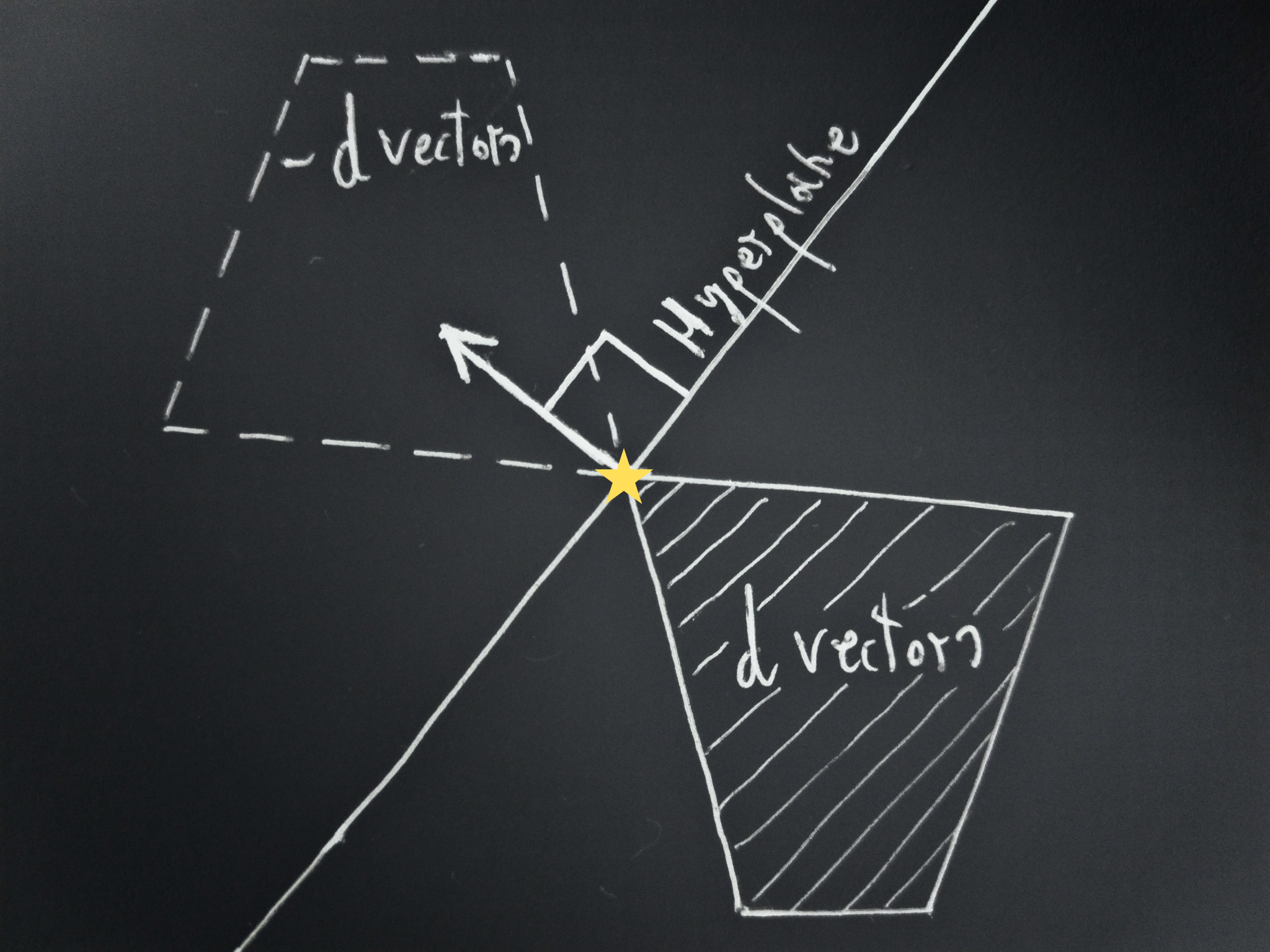 Considering a vector orthogonal to the hyperplane, pointing to the side of the