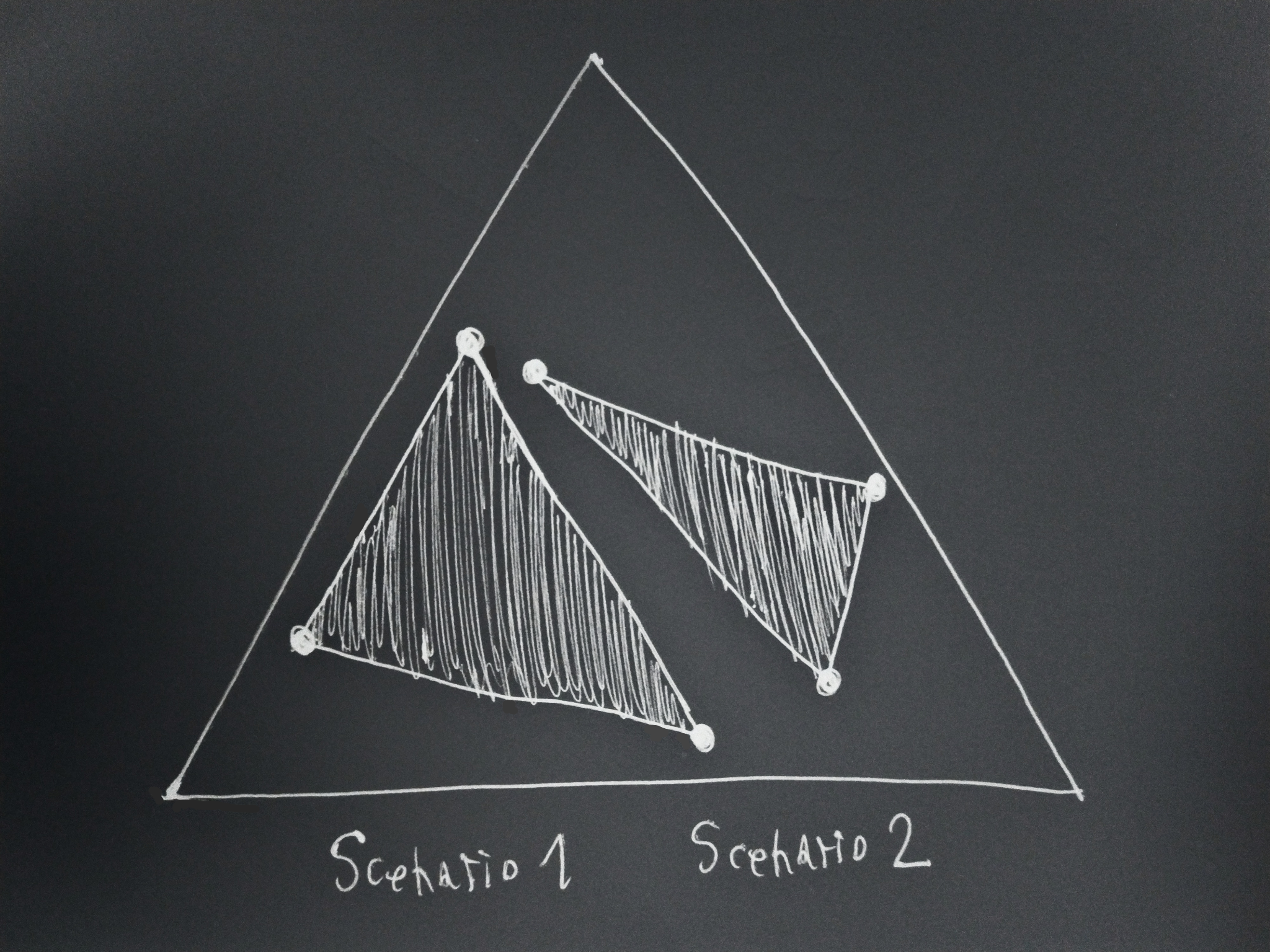 Immediately after the leader chooses a successor, we have a probability distribution over scenarios. This is the same for all agents, and serves to interpolate over their lotteries. In the case above, and removing the triangle of all lotteries to avoid clutter, it could look as follows:
