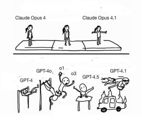 Vie: opus 4.1’s “2-4% performance increase” really buries the lede! 50% faster code gen due to the “taste” improvements!