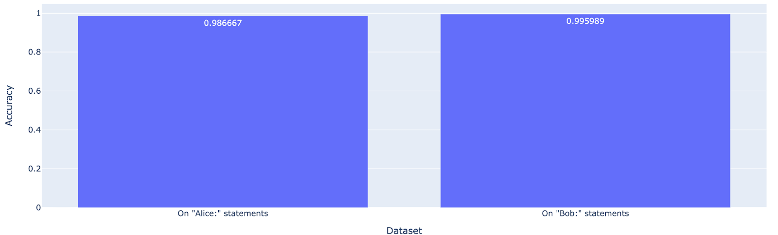 By the way, if you just train a linear probe to classify ‘label’ on statements starting with “Alice:”, it is able to generalize fine to statements starting with “Bob:”.