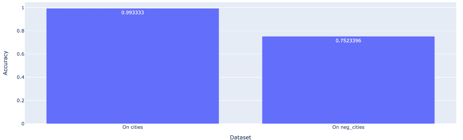For a while it has been my opinion that the datasets people use to study this stuff are bad, and that the datasets from the CCS paper (also used by the CCS challenges paper) are especially awful. So I’ll instead be using the cities and neg_cities datasets – which I think are really quite good – from my Geometry of Truth paper. These datasets consist of statements about city locations and their negations (see examples below).