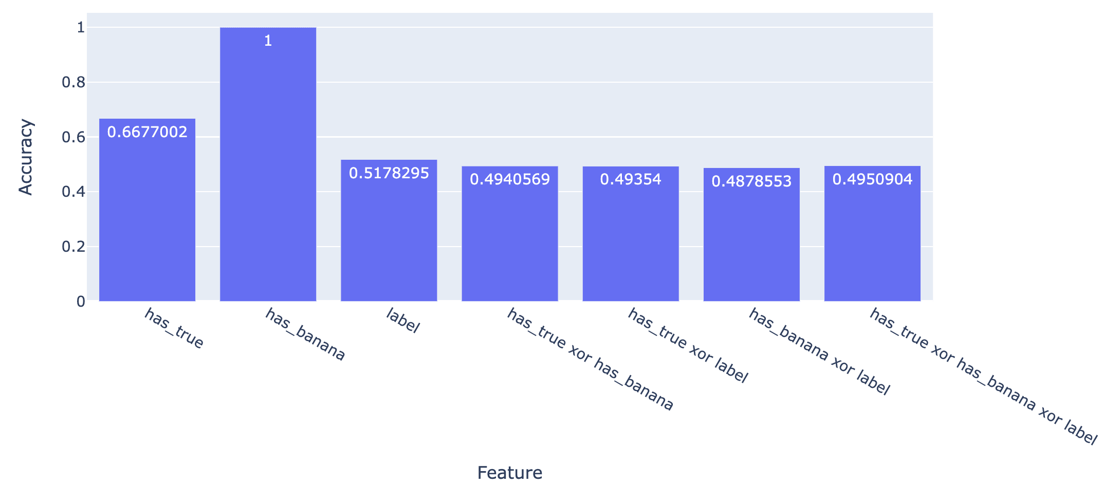 In every case that I looked at, I was able to find linear probes which had perfect or very-near-perfect accuracy for classifying XORs of features.