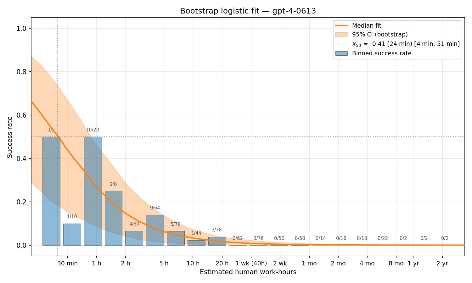 | GPT-4 | Jun 2023 | 24 min [4 min, 51 min] |
